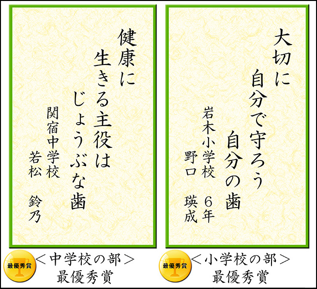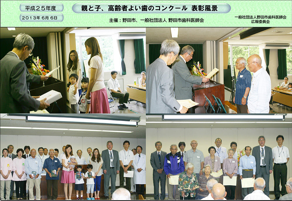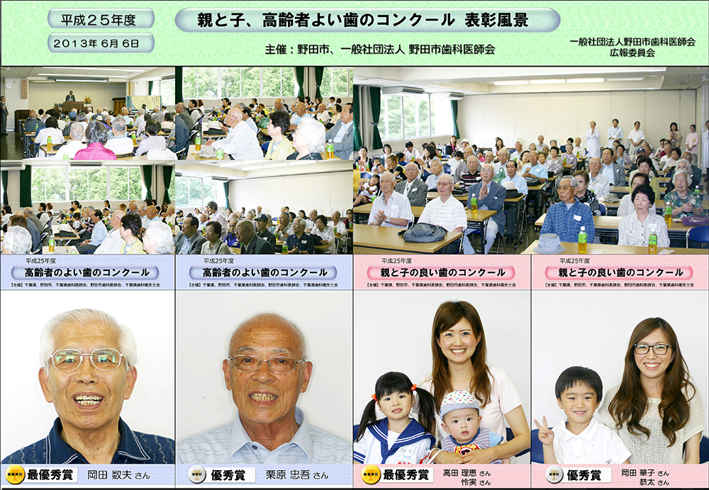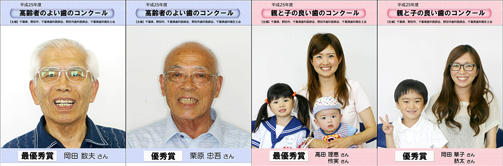 親と子、高齢者のよい歯のコンクール優秀者:平成25年度