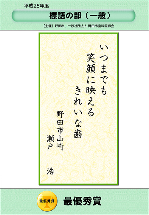 平成25年度_よい歯のコンクール優秀作品 標語部門